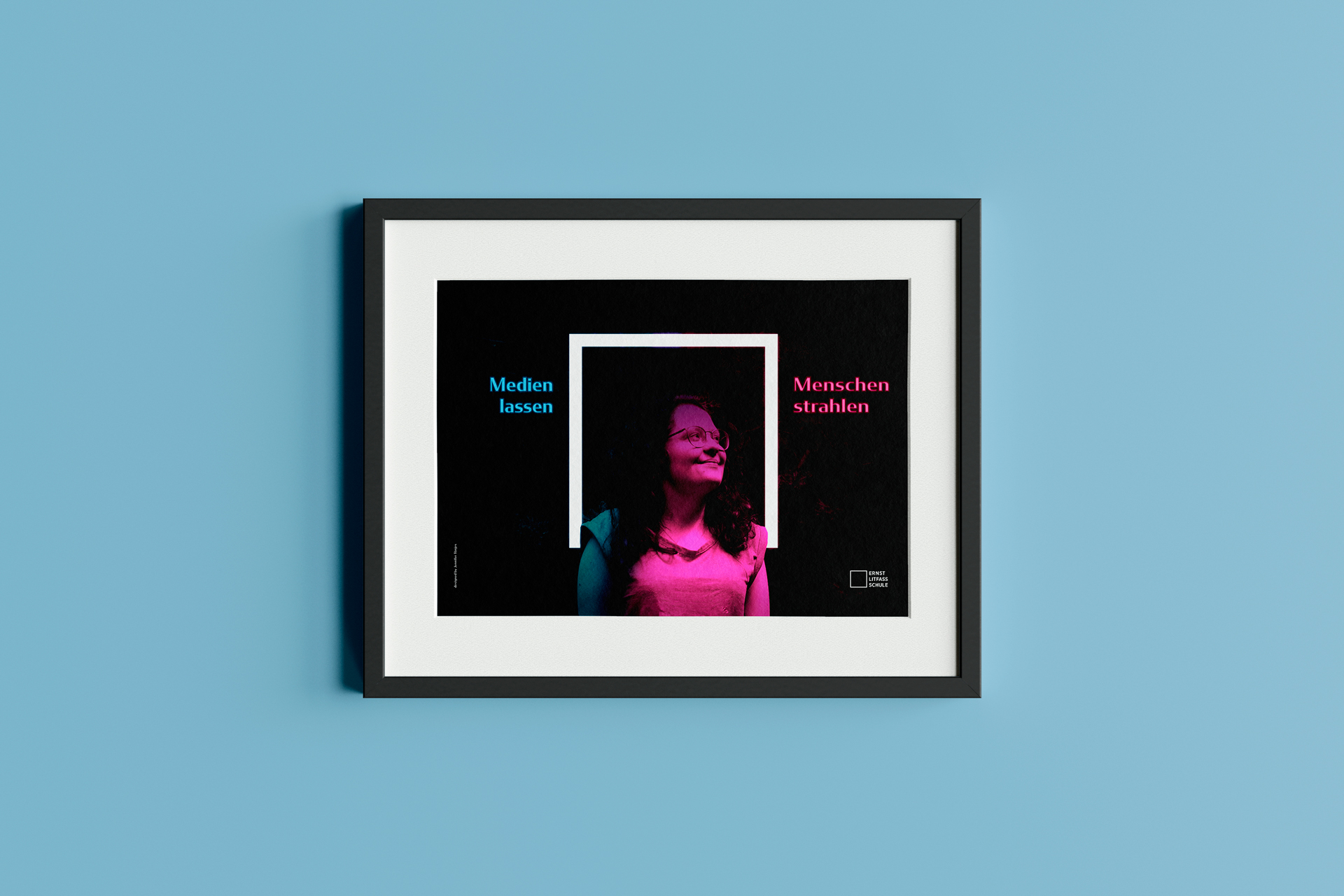 Das Abschlussprojekt des Lernfeldes zur Fotografie im zweiten Lehrjahr stand unter dem Schulmotto „Medien machen – Farbe zeigen“. Voraussetzung war, dass alle fotografischen Elemente selbst erstellt werden mussten und das Rechteck als Bildmarke der Ernst-Litfaß-Schule prominent im Bild zu sehen sein sollte. Das Ziel war es, Aufmerksamkeit für die Berufe in der Medienbranche und die Schule zu erregen. Auch ein Spruch sollte selbst ausgedacht werden.