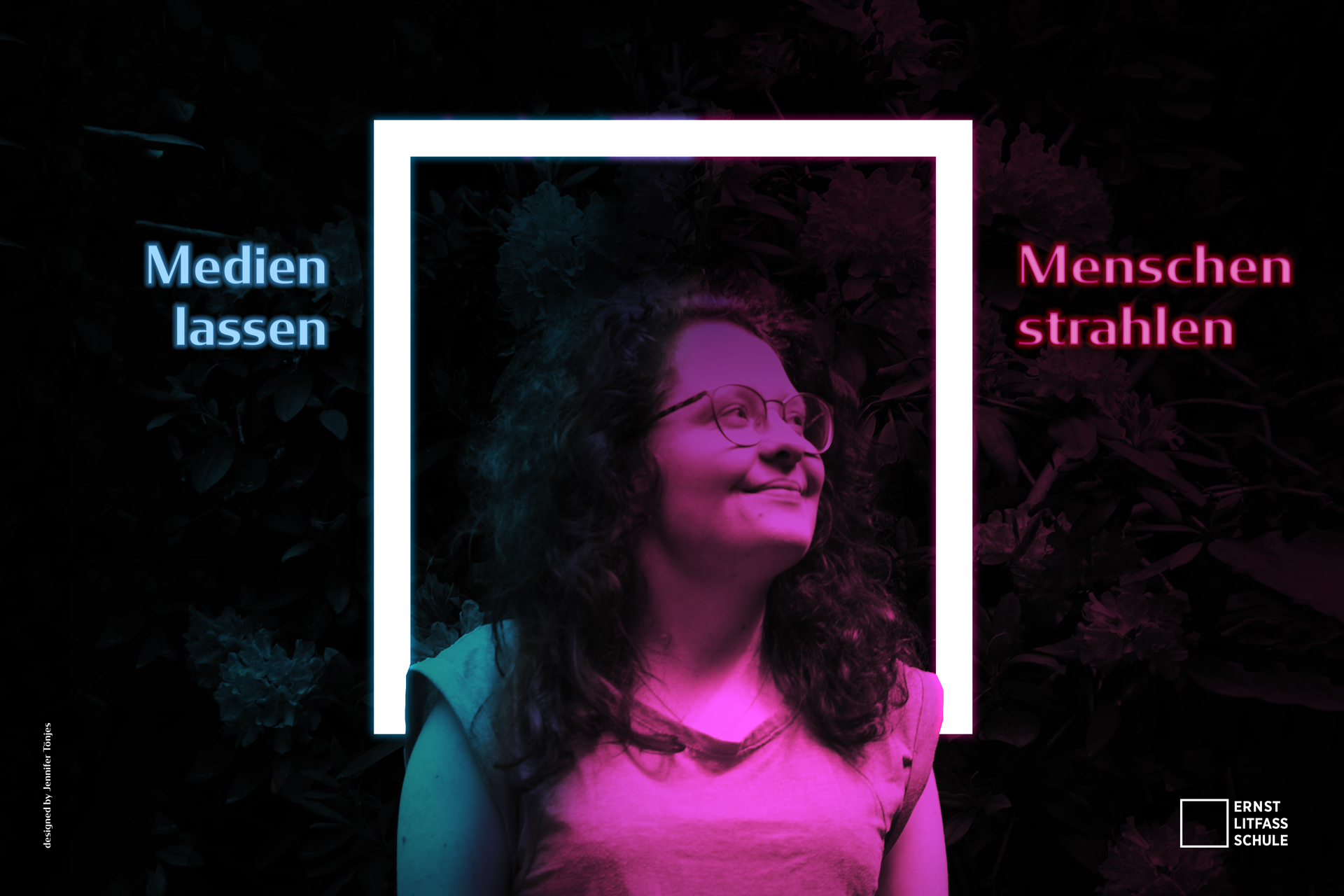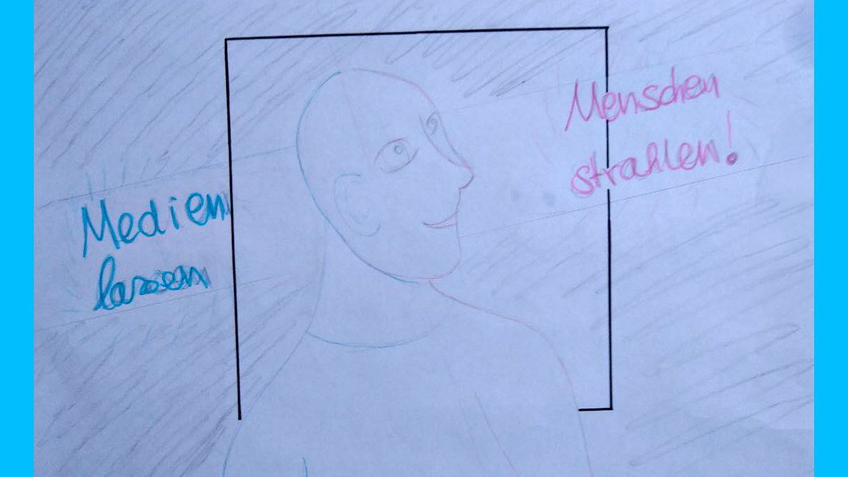 Ich entschied mich für den Spruch „Medien lassen Menschen strahlen“: Erstens, weil Medien Farbe in unseren Alltag bringen und zweitens, weil die Arbeit mit Medien mir selbst Spaß macht.